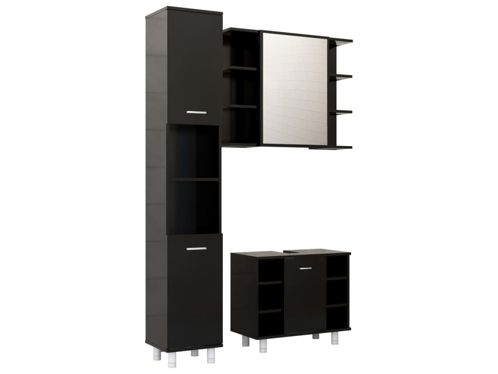 Táto štýlová súprava kúpeľňového nábytku pozostáva z 1 vysokej skrinky, 1 skrinky pod umývadlo a 1 skrinky so zrkadlom. Má úhľadný a pôsobivý vzhľad a postará sa o to, aby ste v kúpeľni mali dostatok úložného priestoru.