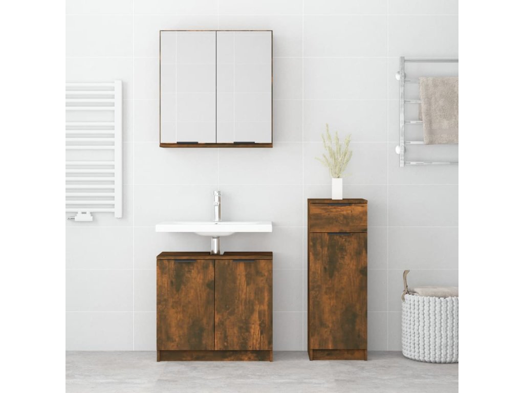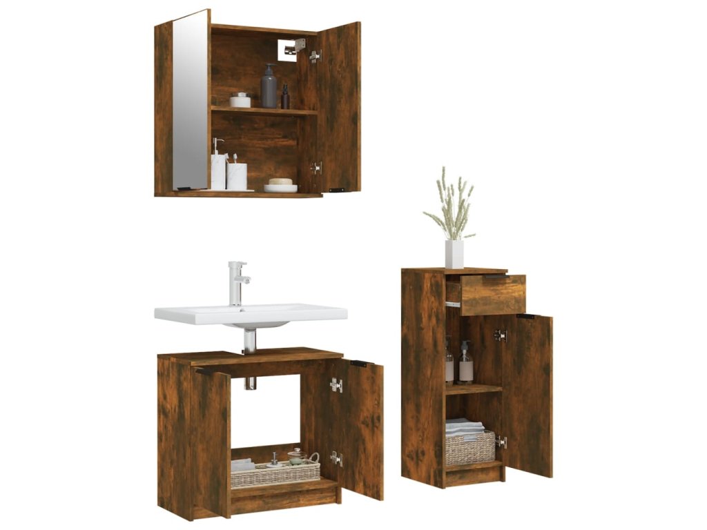 Táto atraktívna súprava kúpeľňových skriniek s dostatočným úložným priestorom má štýlový a zároveň praktický dizajn.