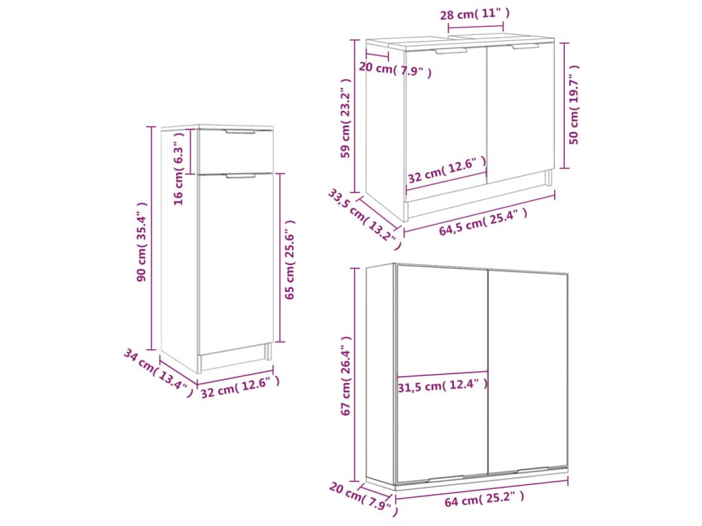 - Rozmery stojanovej skrinky: 32 x 34 x 90 cm (D x Š x V)