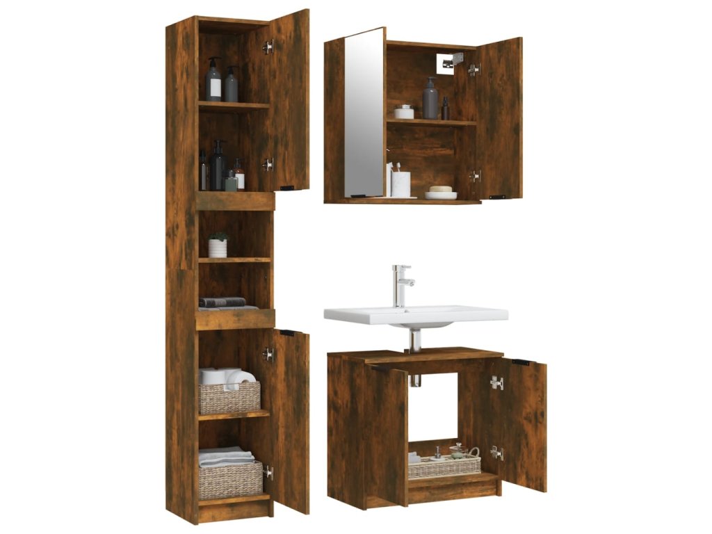 Táto atraktívna súprava kúpeľňových skriniek s dostatočným úložným priestorom má štýlový a zároveň praktický dizajn.