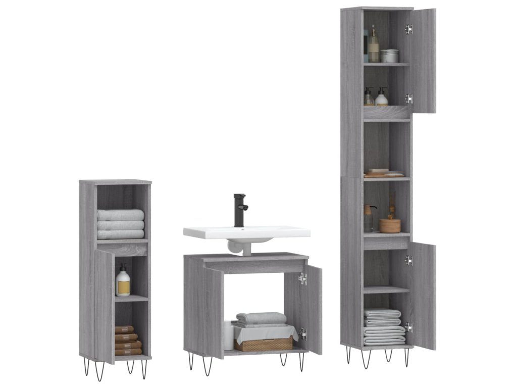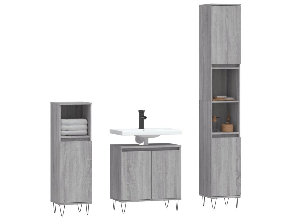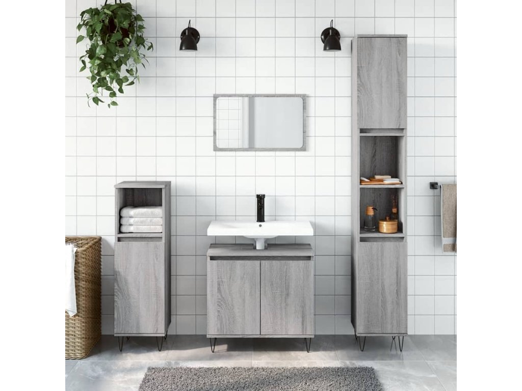 Táto atraktívna súprava kúpeľňových skriniek s dostatočným úložným priestorom má štýlový a zároveň praktický dizajn.