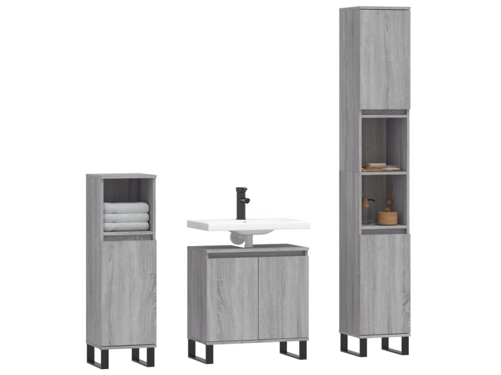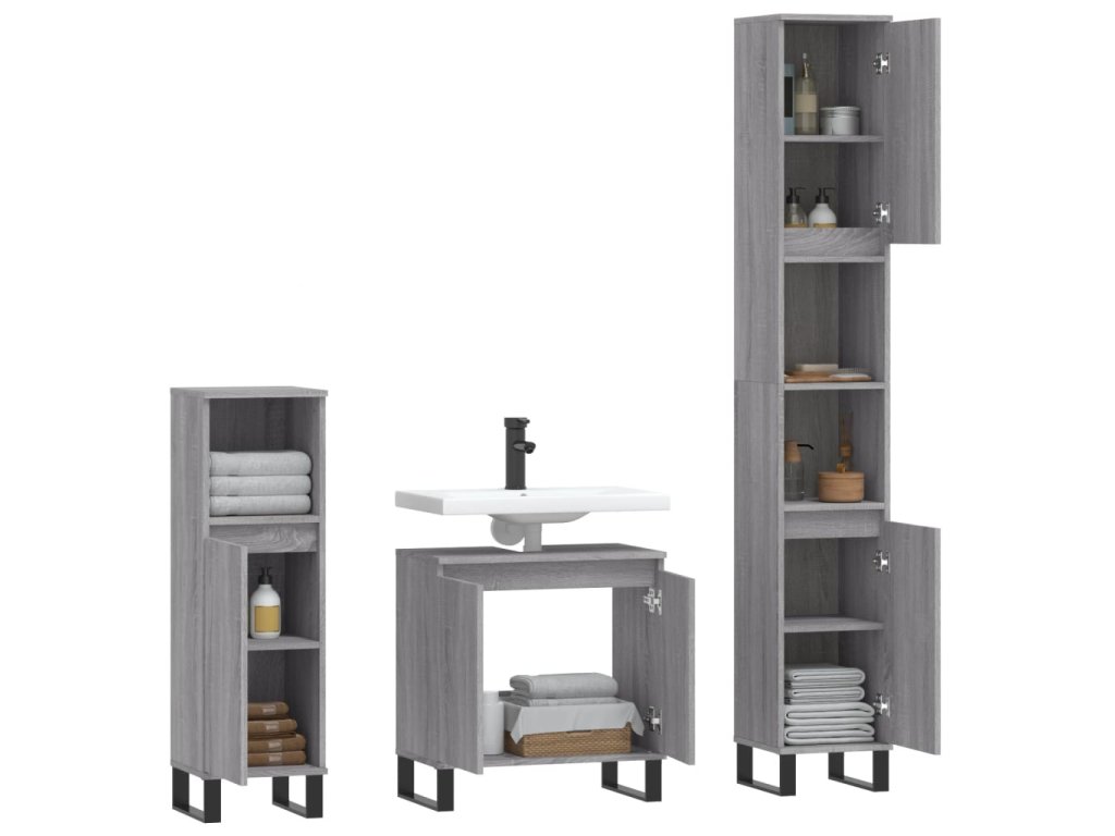 Táto atraktívna súprava kúpeľňových skriniek s dostatočným úložným priestorom má štýlový a zároveň praktický dizajn.