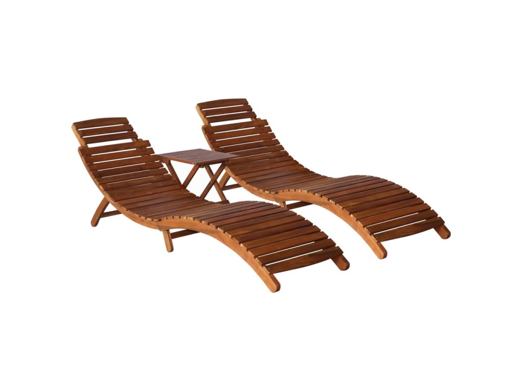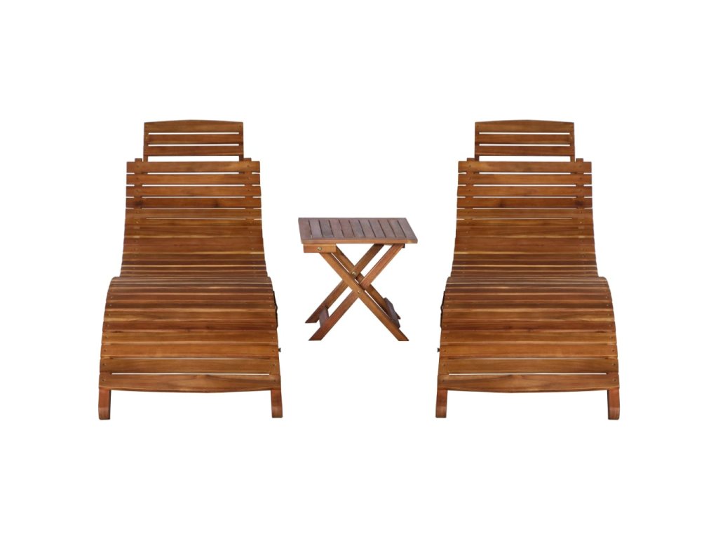 Záhradné ležadlo je vyrobené z trvácneho akáciového masívu, ktorý bol ošetrený prírodným olejovým náterom a ktorý sa vyznačuje vynikajúcou odolnosťou voči poveternostným vplyvom, a preto je mimoriadne vhodné do exteriéru. Pevný skladací stolík poskytuje dodatočné miesto na odkladanie drobností, ktoré chcete mať poruke. Stolík a ležadlá sa dajú jednoducho sklopiť, aby nezaberali veľa miesta.