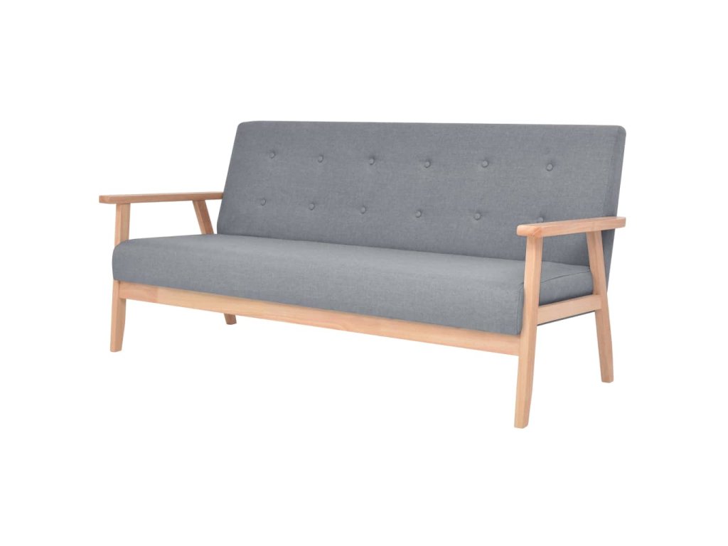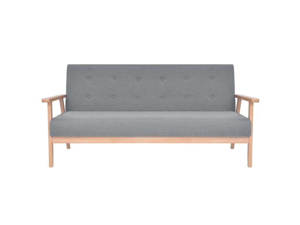 Súprava pohoviek je potiahnutá mäkkou polyesterovou látkou a vyčalúnená molitanom, a tak poskytuje optimálny komfort. Rám z dreveného masívu zabezpečuje stabilitu a trvácnosť. Montáž je naozaj jednoduchá.