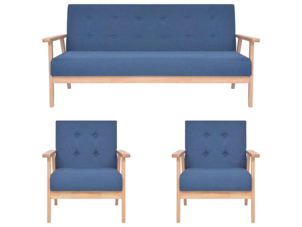 Súprava kresla a 3-miestnej pohovky má poťah z mäkkej polyesterovej látky, je vyplnená molitanom, a tak poskytuje optimálny komfort. Vďaka rámu z dreveného masívu je kreslo stabilné a trvácne. Montáž je naozaj jednoduchá.
