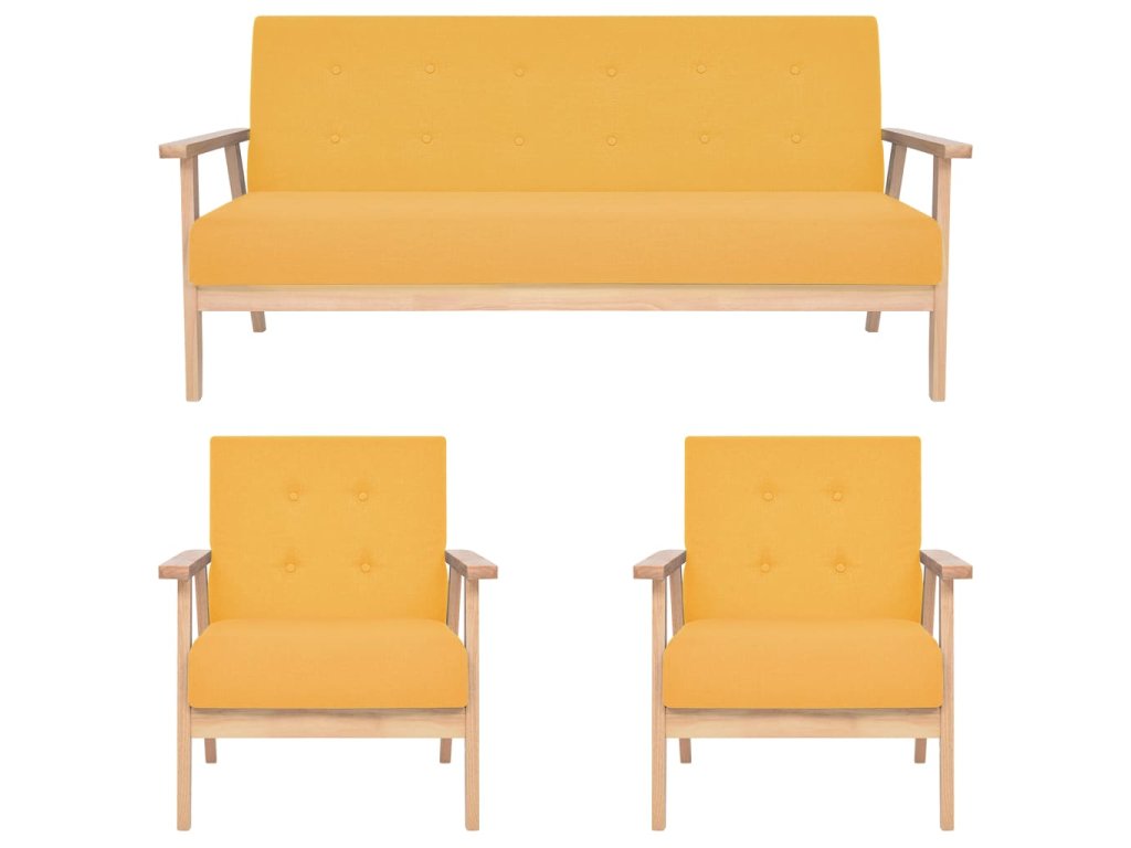 Súprava kresla a 3-miestnej pohovky má poťah z mäkkej polyesterovej látky, je vyplnená molitanom, a tak poskytuje optimálny komfort. Vďaka rámu z dreveného masívu je kreslo stabilné a trvácne. Montáž je naozaj jednoduchá.