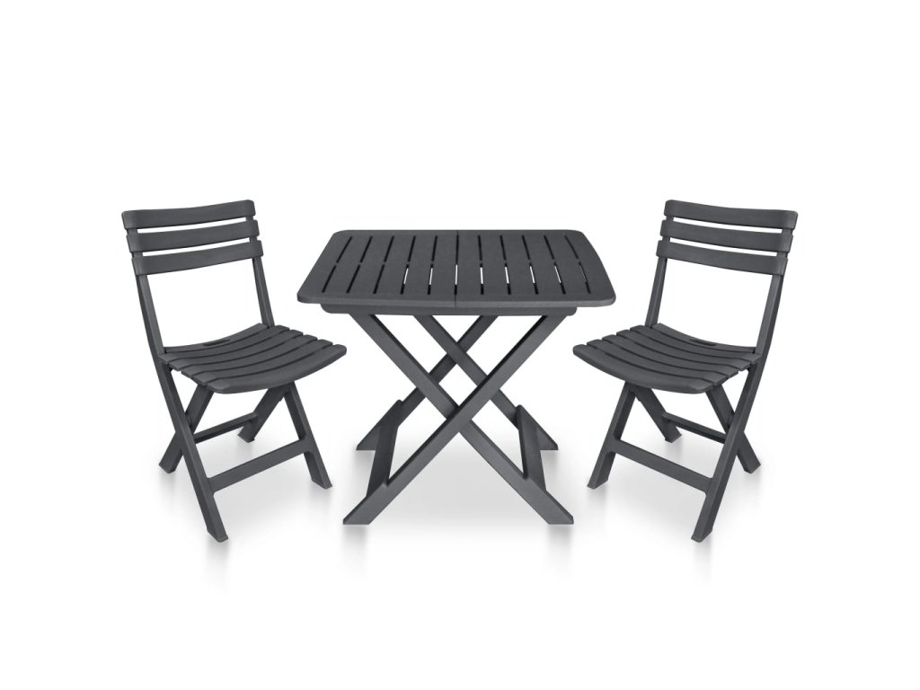 Balenie obsahuje 1 skladací stôl a 2 skladacie stoličky.