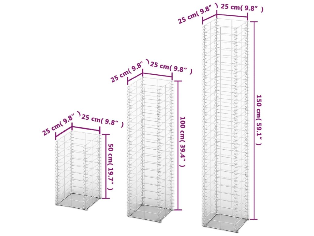 Táto súprava gabiónov troch rôznych veľkostí vám skvele poslúži pri projektovaní vonkajších priestorov v okolí vášho príbytku či firmy. Gabiónový kôš poskytuje jednoduchý spôsob ako postaviť pevnú stenu, ktorá udrží sneh a ochráni pred silným vetrom.