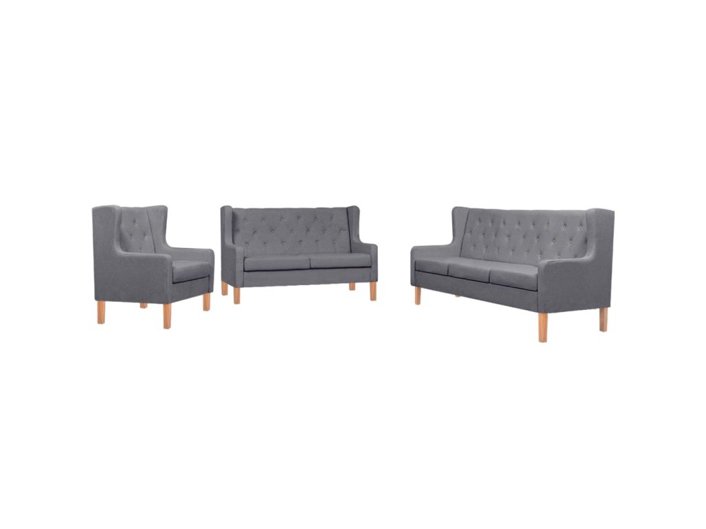 Súprava pohoviek je potiahnutá mäkkou polyesterovou látkou a vyčalúnená molitanom, a tak poskytuje optimálny komfort. Rám z dreveného masívu zabezpečuje stabilitu a trvácnosť. Montáž je naozaj jednoduchá.