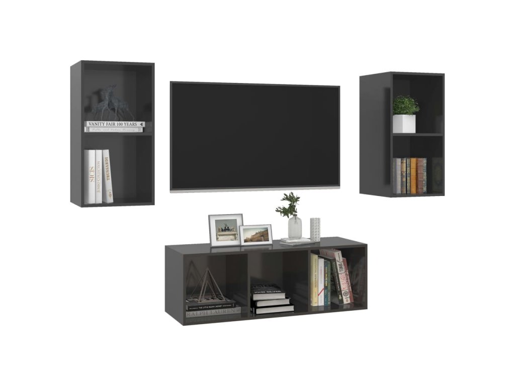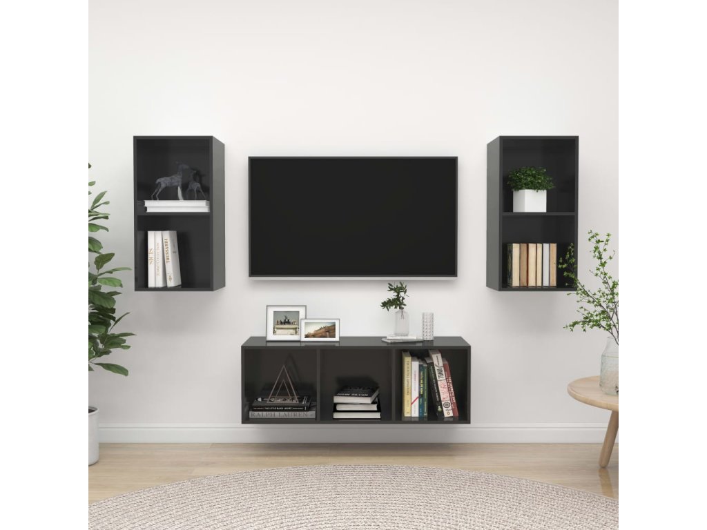 Táto sada závesných TV skriniek je vybavená veľkým úložným priestorom na uloženie rôznych predmetov a vo vašej domácnosti vytvorí praktický a pútavý doplnok.