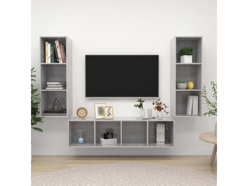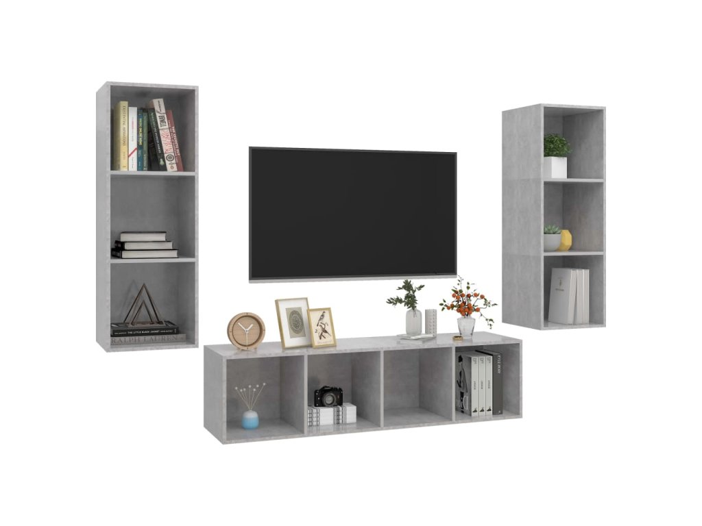 Táto sada závesných TV skriniek je vybavená veľkým úložným priestorom na uloženie rôznych predmetov a vo vašej domácnosti vytvorí praktický a pútavý doplnok.