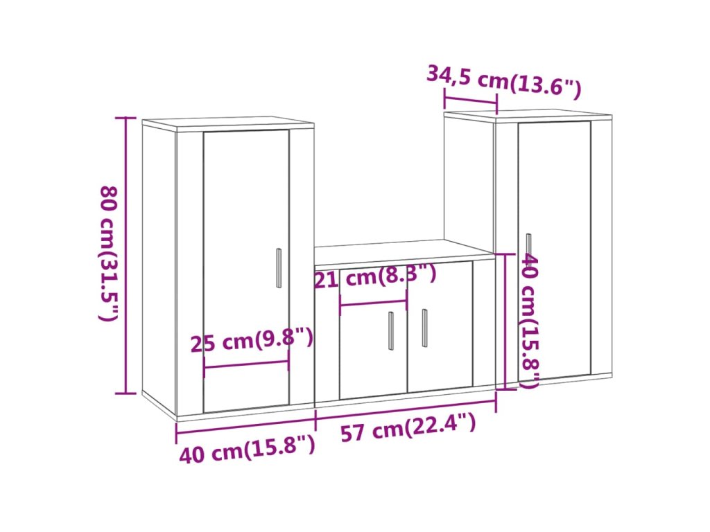 - 2 x TV skrinka: 40 x 34,5 x 80 cm (D x Š x V)