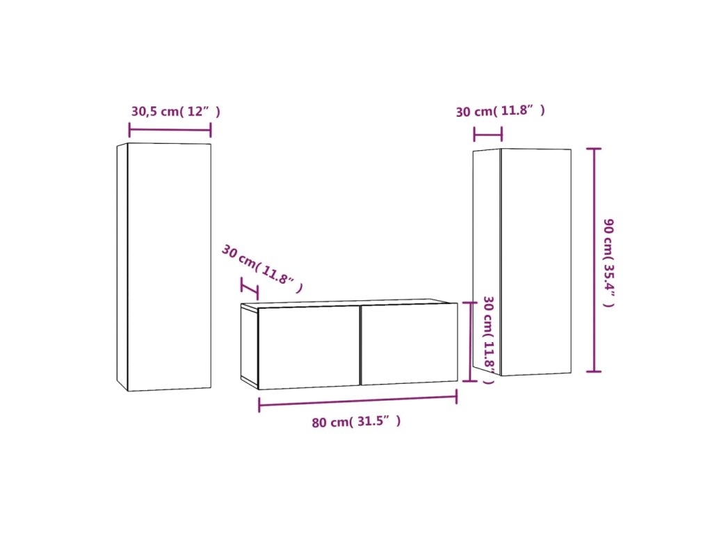 - 2 x TV skrinka: 30,5 x 30 x 90 cm (Š x H x V)