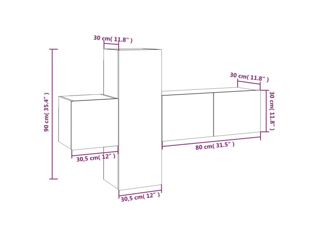 - 1 x TV skrinka: 30,5 x 30 x 90 cm (Š x H x V)