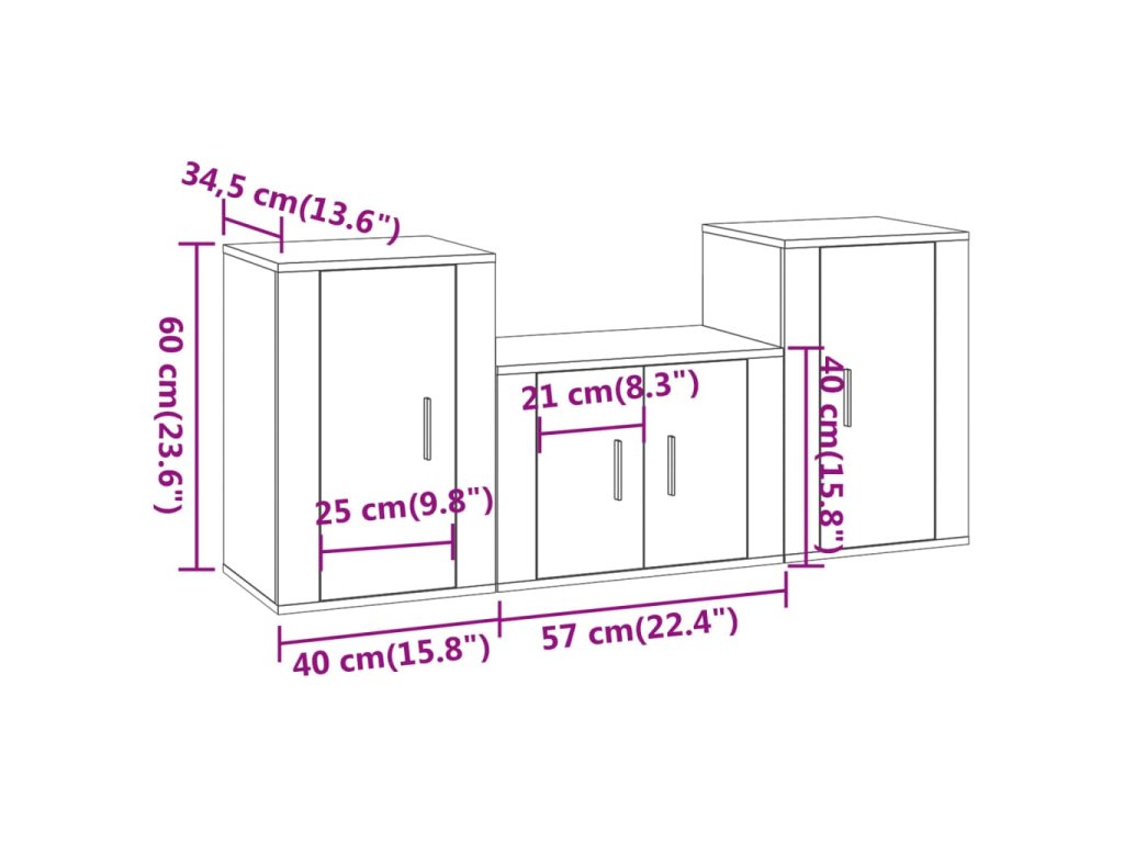 - 2 x TV skrinka: 40 x 34,5 x 60 cm (D x Š x V)