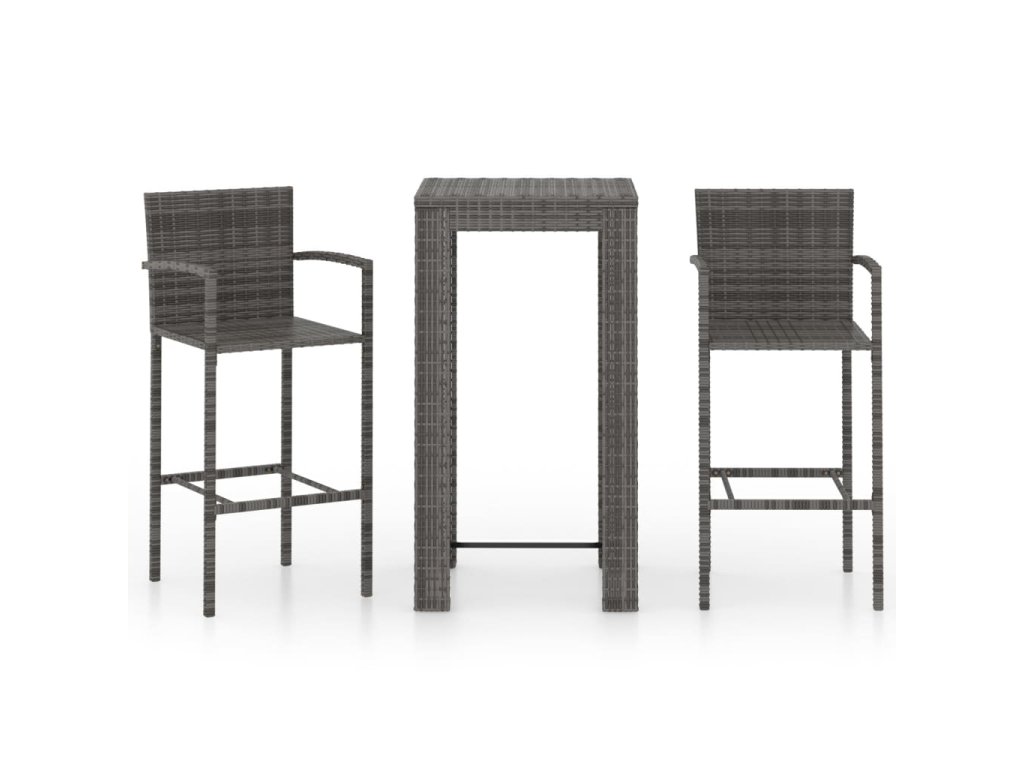 Barový stôl je opatrený oceľovým rámom s práškovanou povrchovou úpravou, vďaka čomu je stabilný a odolný. Stolová doska je ideálna na odloženie nápojov, jedla alebo dekoratívnych predmetov. Stoličky majú pevnú konštrukciu z oceľového rámu a sú vyrobené z PE ratanu odolného voči poveternostným vplyvom, čo zaisťuje ich stabilitu a ľahké premiestňovanie. Opierka nôh dodáva stoličke väčšie pohodlie počas sedenia.