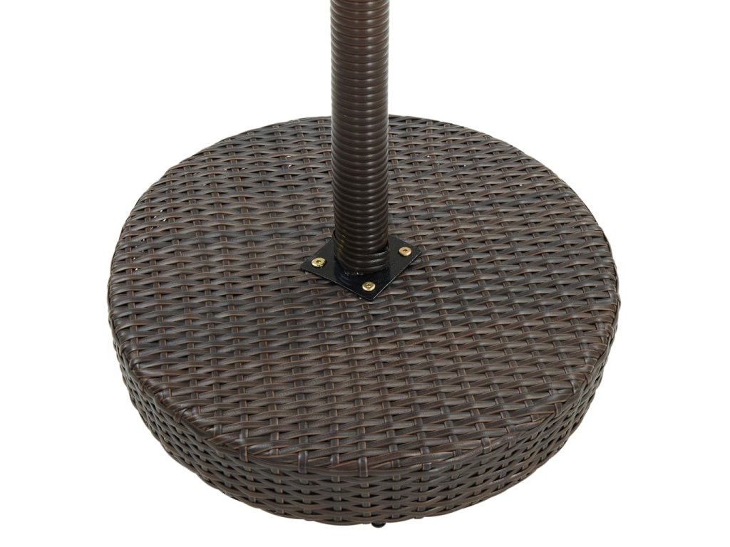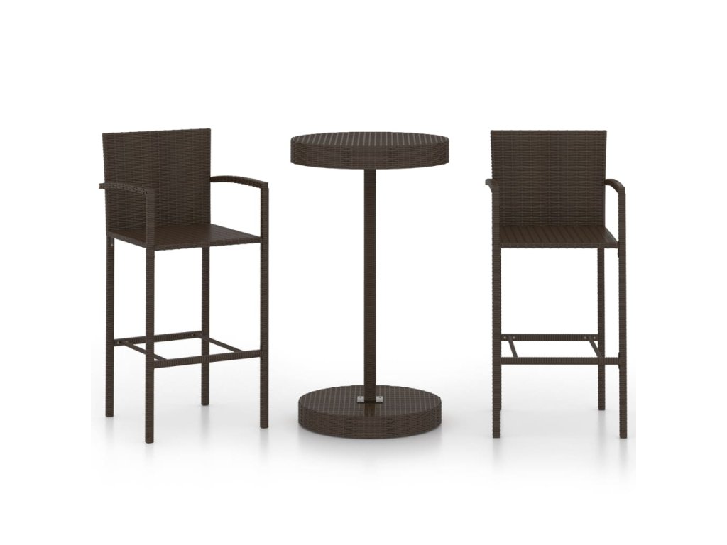 Barový stôl je opatrený oceľovým rámom s práškovanou povrchovou úpravou, vďaka čomu je stabilný a odolný. Okrúhla stolová doska je ideálna na položenie nápojov, jedla alebo dekoratívnych predmetov. Stoličky majú pevnú konštrukciu z oceľového rámu a sú vyrobené z PE ratanu odolného voči poveternostným vplyvom, čo zaisťuje ich stabilitu a ľahké premiestňovanie. Opierka nôh dodáva stoličke väčšie pohodlie počas sedenia.