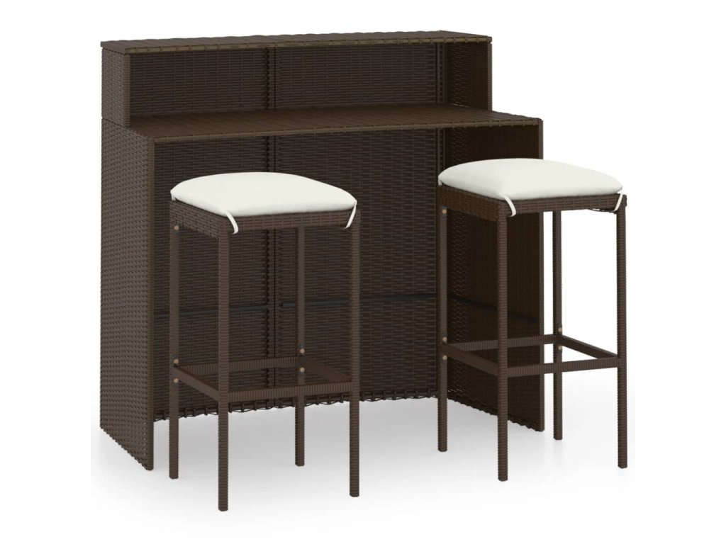 Barová súprava je vyrobená z PE ratanu, ktorý je vodovzdorný a odolný voči poveternostným vplyvom. Dá sa ľahko očistiť, je trvácna a vhodná aj na každodenné používanie. Oceľový rám s práškovou povrchovou úpravou dodáva všetkým položkám potrebnú stabilitu a odolnosť. Vďaka ľahkej konštrukcii sa dajú bez námahy presúvať. Hrubé, odnímateľné podložky na sedadlo poskytujú optimálne pohodlie. Podložky na sedadlo majú poťahy na zips, ktoré môžete jednoducho zvliecť a oprať.