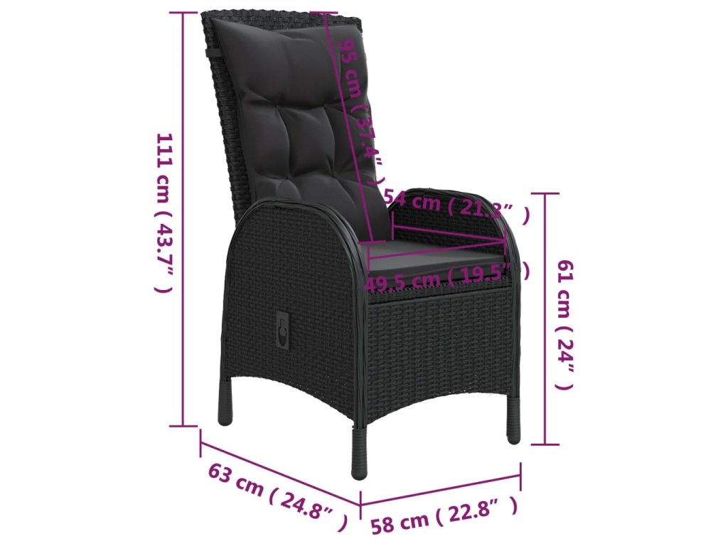 - Pohodlné stoličky: Záhradné polohovateľné kreslo navrhnuté so zakriveným operadlom a lakťovou opierkou má ergonomickejší tvar pre maximálne pohodlie. Vankúše sú súčasťou balenia pre väčšiu podporu a poťah na zips je odnímateľný pre ľahké pranie.