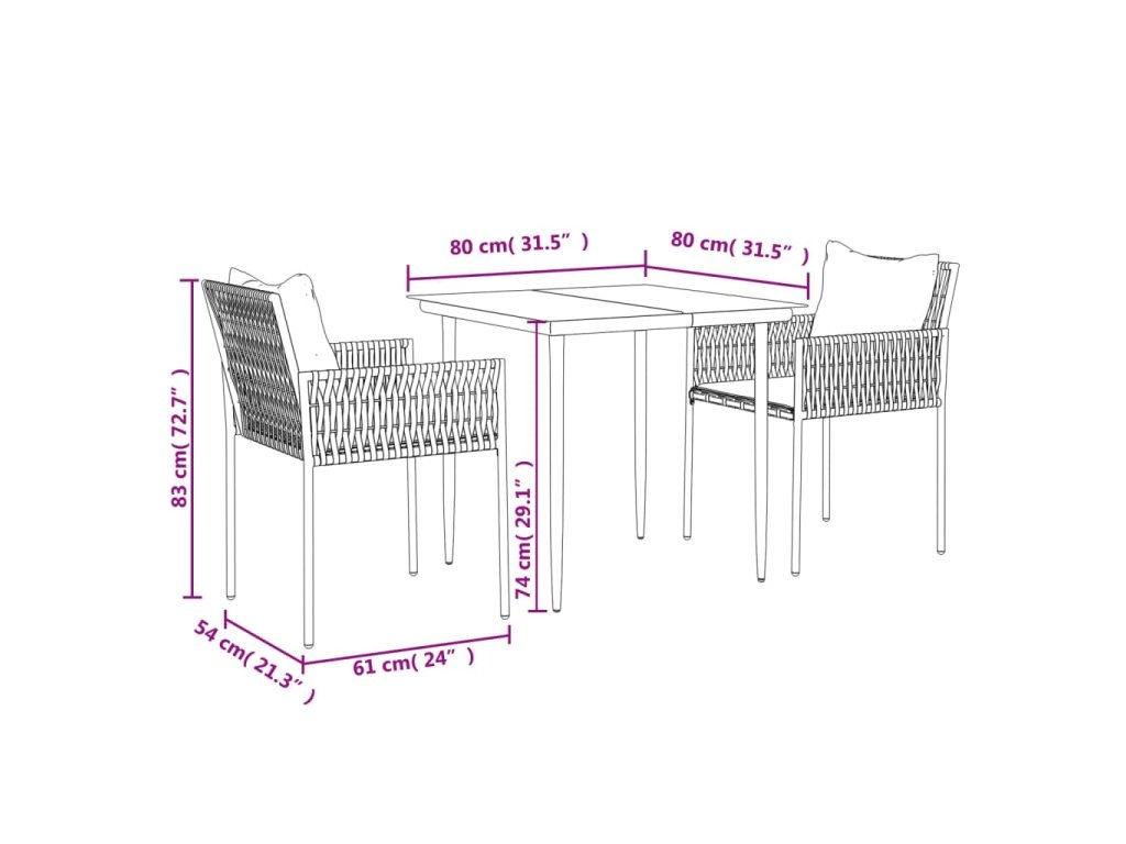 - Rozmery stola: 80 x 80 x 74 cm (D x Š x V)