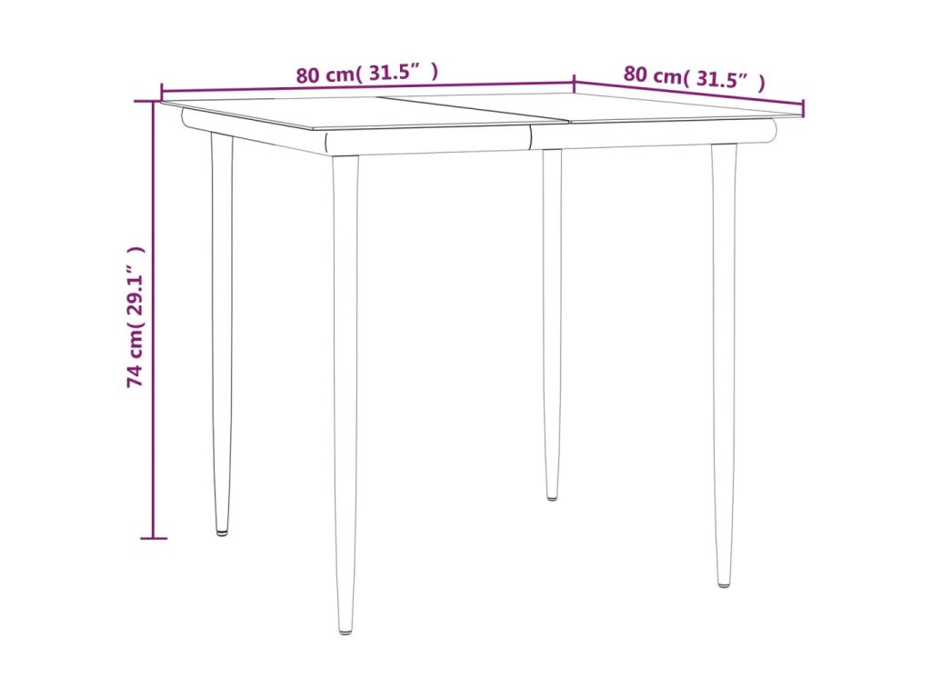 - Rozmery stola: 80 x 80 x 74 cm (D x Š x V)