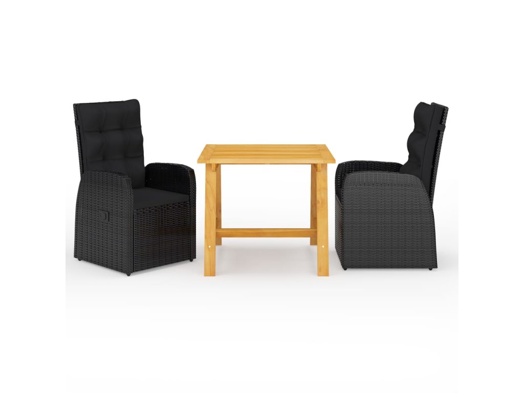 Jedálenský stôl je vyrobený z akáciového masívu s olejovým náterom, vďaka čomu je stabilný, trvácny a ľahko sa udržiava. Jedálenské stoličky majú oceľový rám s práškovou povrchovou úpravou, ktorý je pokrytý PE ratanom, vďaka čomu sú pevné a dajú sa ľahko očistiť. Stačí zatlačiť tlačidlo v bočnej časti a operadlo sa sklopí. Stoličky majú ľahkú konštrukciu, a tak sa dajú jednoducho premiestňovať. Dodávajú sa spolu s veľmi pohodlnými, nahusto vyčalúnenými podložkami na sedadlo, ktoré prinášajú optimálny komfort. Polyesterové poťahy si nevyžadujú náročnú údržbu a stačí ich zvliecť a oprať.