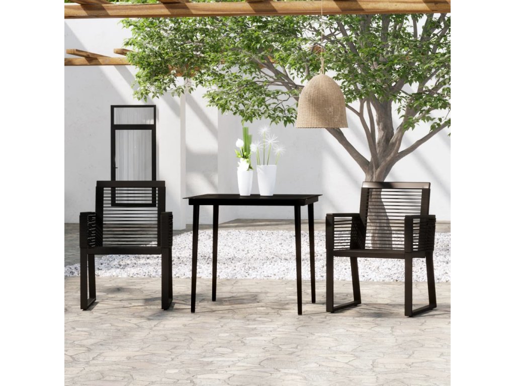 Tento jedálenský stôl je vyrobený z oceľového rámu s práškovým nástrekom, je pevný a stabilný na každodenné vonkajšie používanie. Hladká sklenená doska stola sa jednoducho čistí vlhkou handričkou a je ideálna na umiestnenie jedál, nápojov a dekoratívnych predmetov. Záhradné stoličky sú vyrobené z PVC ratanu, prepleteného na jemnom lakovanom oceľovom ráme, vďaka čomu sú stabilné a odolné voči nepriazni počasia a UV žiareniu.