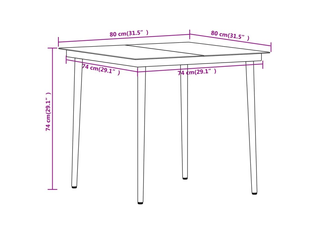 - Rozmery stola: 80 x 80 x 74 cm (D x Š x V)