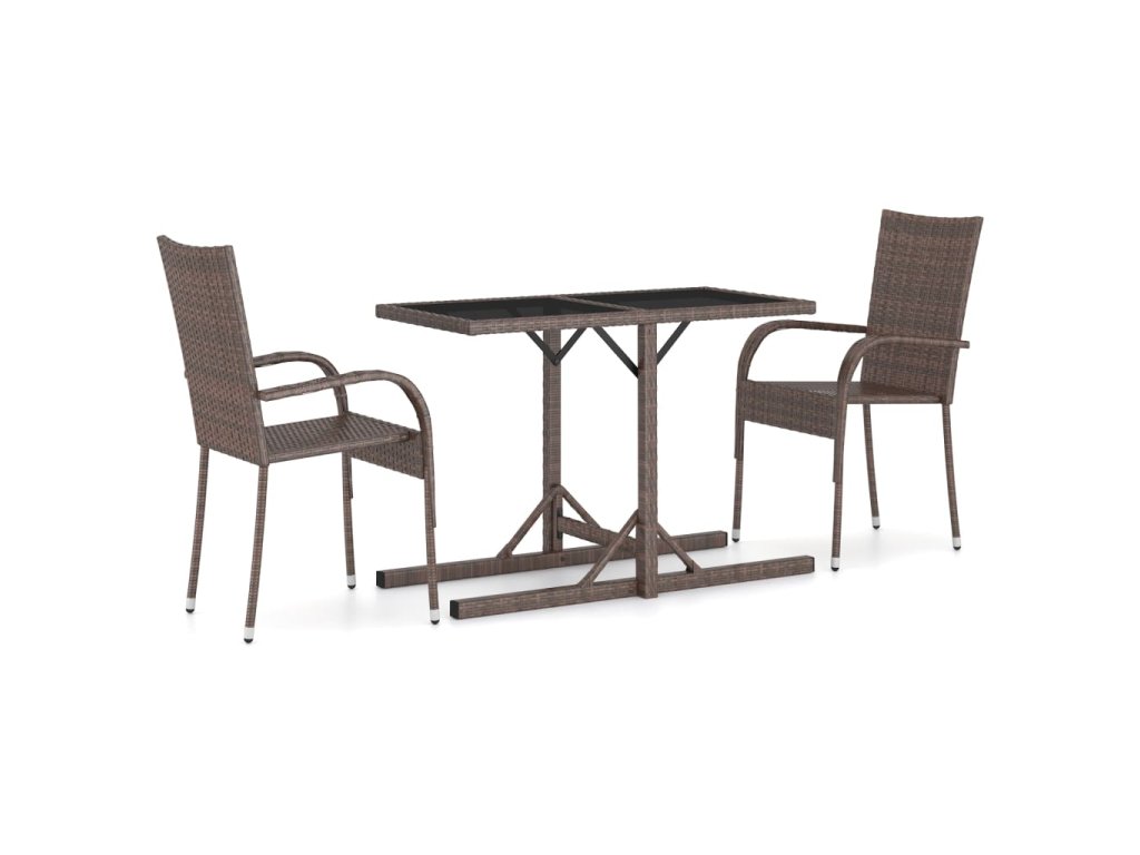 Vďaka práškovanému oceľovému rámu pokrytému PE ratanom, ktorý je odolný voči vplyvom počasia, je táto súprava pevná a ľahko sa čistí. Sklenená doska stola dodáva do vášho vonkajšieho obytného priestoru nádych prepychu. Vonkajšie stoličky sú ľahké a dajú sa zložiť, aby šetrili priestor, keď sa nepoužívajú.