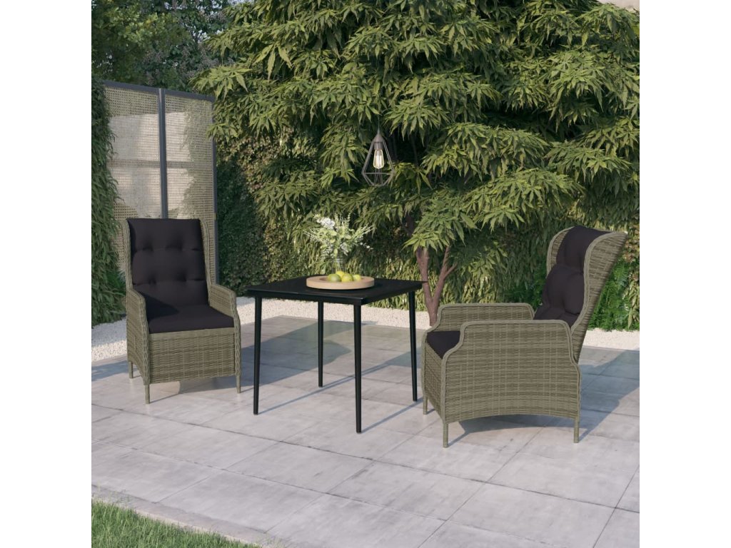 Praktická vonkajšia jedálenská súprava má oceľový rám, vďaka čomu je pevná a odolná. Záhradné polohovacie kreslá sú vyrobené z vodeodolného a bezúdržbového PE ratanu, čím sú ideálne na vonkajšie použitie. Hrubo čalúnené vankúše poskytnú extra pohodlie pri stolovaní. Poťah na vankúš má zips a dá sa oprať. Vďaka plynovému zdvíhaciemu mechanizmu je operadlo stoličky nastaviteľné, aby vyhovovalo vašej polohe. Dotykom tlačidla na boku sa dá operadlo sklopiť do pohodlnej polohy. Hladká sklenená doska stola sa ľahko čistí vlhkou handričkou a je vynikajúca na umiestnenie jedál, nápojov a iných dekoratívnych predmetov.