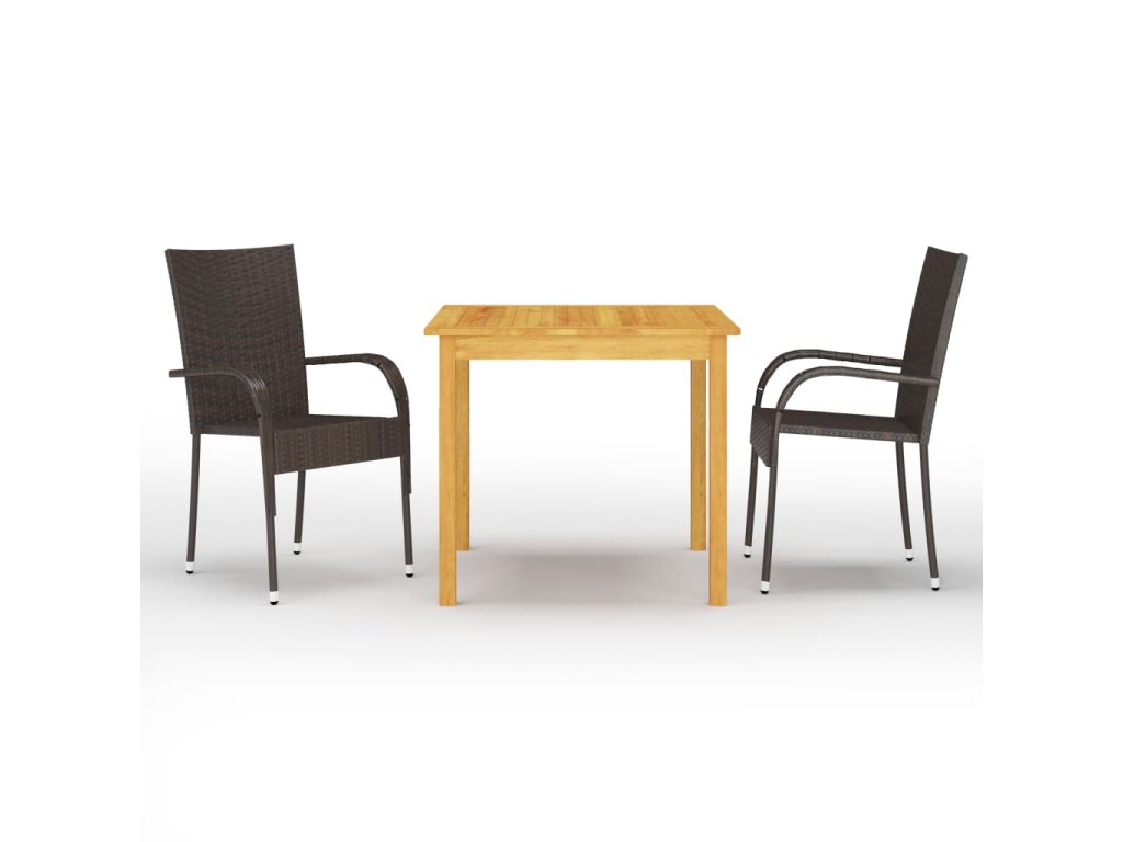 Jedálenský stôl je vyrobený z masívneho akáciového dreva s olejovou povrchovou úpravou, vďaka čomu je stabilný, odolný a ľahko sa udržiava. Tieto jedálenské stoličky s oceľovým rámom s práškovým nástrekom pokrytým PE ratanom odolným voči poveternostným vplyvom sú pevné a ľahko sa čistia. Vonkajšie stoličky sú ľahké a dajú sa skladať na seba, aby sa ušetrilo miesto, keď sa nepoužívajú.