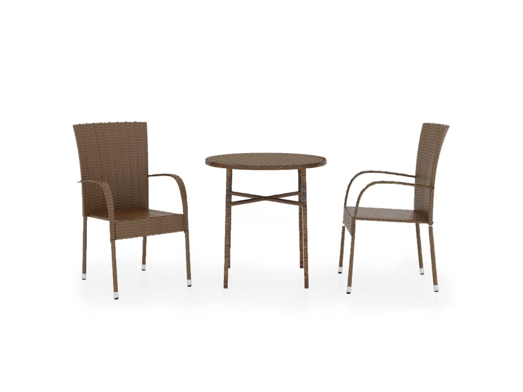 Praktická vonkajšia jedálenská súprava má oceľový rám s práškovanou povrchovou úpravou pokrytý PE ratanom, vďaka čomu je odolná, ľahko sa čistí a je vhodná na každodenné vonkajšie používanie. Stôl je vynikajúci na uchovávanie nápojov a jedál na dosah ruky. Stoličky sú ľahké a dajú sa stohovať, aby sa ušetrilo miesto, keď sa nepoužívajú.