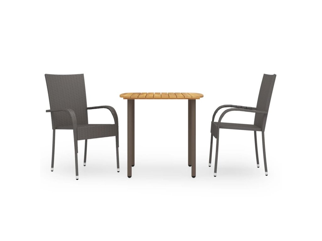 Jedálenský stôl je vyrobený z masívneho akáciového dreva a odolnej ocele, takže je pevný a stabilný. Vďaka povrchu s olejovým náterom je vhodný aj na vonkajšie použitie. Jedálenské stoličky s oceľovým rámom potiahnutým PE ratanom, ktorý je odolný voči poveternostným vplyvom, sú pevné a ľahko sa čistia. Tieto záhradné stoličky je možné stohovať, aby sa ušetrilo miesto, keď sa práve nepoužívajú.