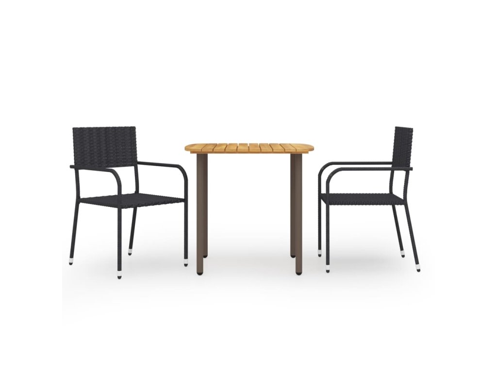 Jedálenský stôl je vyrobený z masívneho akáciového dreva a odolnej ocele, takže je pevný a stabilný. Vďaka povrchu s olejovým náterom je vhodný aj na vonkajšie použitie. Jedálenské stoličky s oceľovým rámom potiahnutým PE ratanom, ktorý je odolný voči poveternostným vplyvom, sú pevné a ľahko sa čistia. Tieto záhradné stoličky je možné stohovať, aby sa ušetrilo miesto, keď sa práve nepoužívajú.