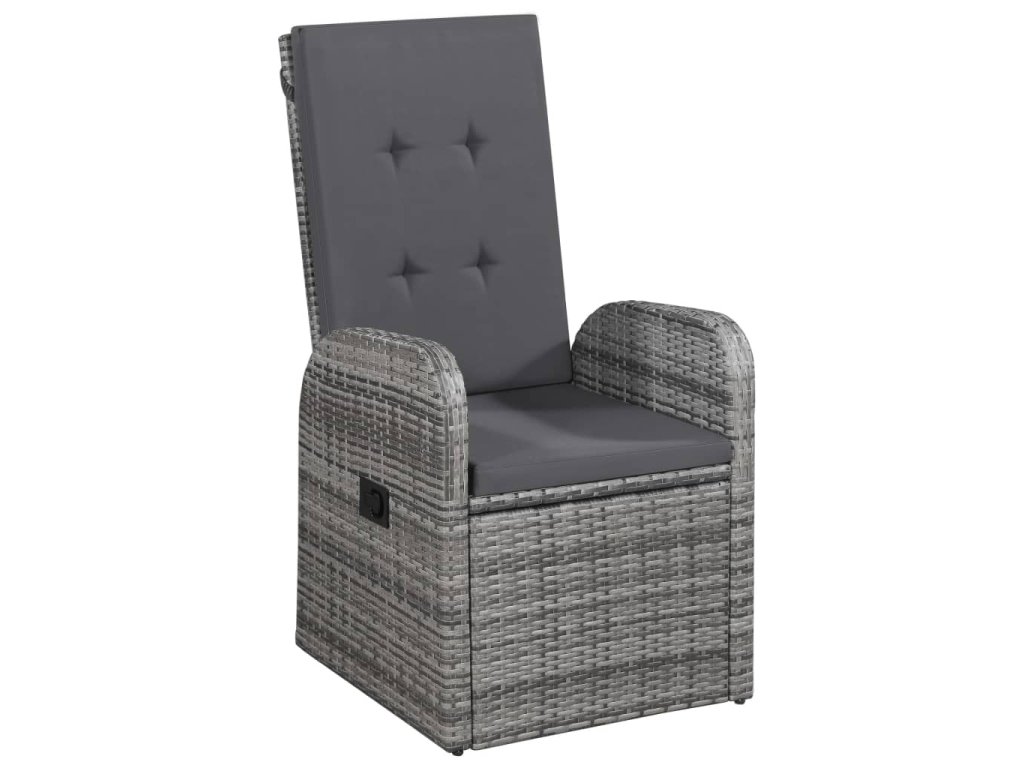 Jedálenský stôl je vyrobený z akáciového masívu s olejovým náterom, vďaka čomu je stabilný, trvácny a ľahko sa udržiava. Jedálenské stoličky majú oceľový rám s práškovou povrchovou úpravou, ktorý je pokrytý PE ratanom, vďaka čomu sú pevné a dajú sa ľahko očistiť. Stačí zatlačiť tlačidlo v bočnej časti a operadlo sa sklopí. Stoličky majú ľahkú konštrukciu, a tak sa dajú jednoducho premiestňovať. Dodávajú sa spolu s veľmi pohodlnými, nahusto vyčalúnenými podložkami na sedadlo, ktoré prinášajú optimálny komfort. Polyesterové poťahy si nevyžadujú náročnú údržbu a stačí ich zvliecť a oprať.