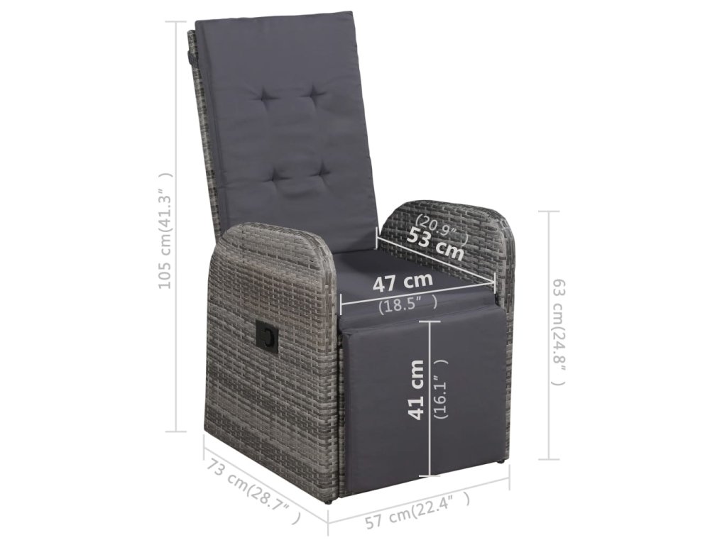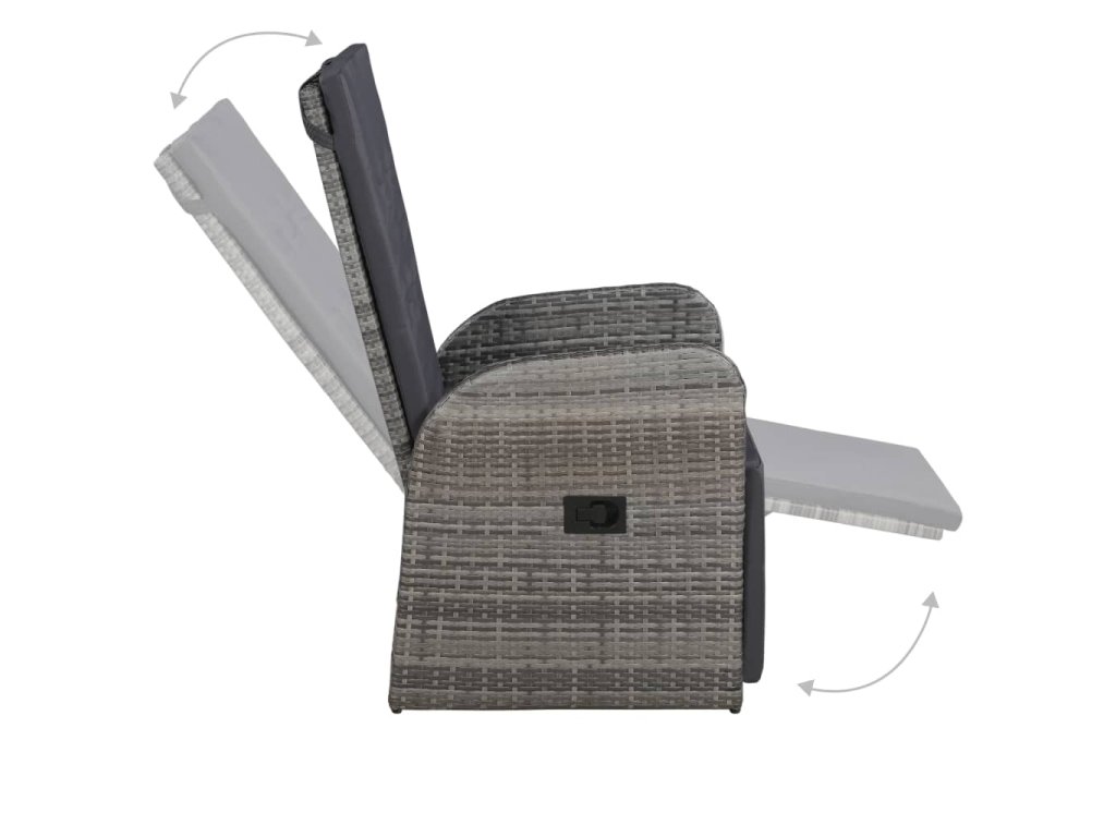 Jedálenský stôl je vyrobený z akáciového masívu s olejovým náterom, vďaka čomu je stabilný, trvácny a ľahko sa udržiava. Jedálenské stoličky majú oceľový rám s práškovou povrchovou úpravou, ktorý je pokrytý PE ratanom, vďaka čomu sú pevné a dajú sa ľahko očistiť. Stačí zatlačiť tlačidlo v bočnej časti a operadlo s podnožkou sa sklopí, takže môžete plne relaxovať. Stoličky majú ľahkú konštrukciu, a tak sa dajú jednoducho premiestňovať. Dodávajú sa spolu s veľmi pohodlnými, nahusto vyčalúnenými podložkami na sedadlo, ktoré prinášajú optimálny komfort. Polyesterové poťahy si nevyžadujú náročnú údržbu a stačí ich zvliecť a oprať.