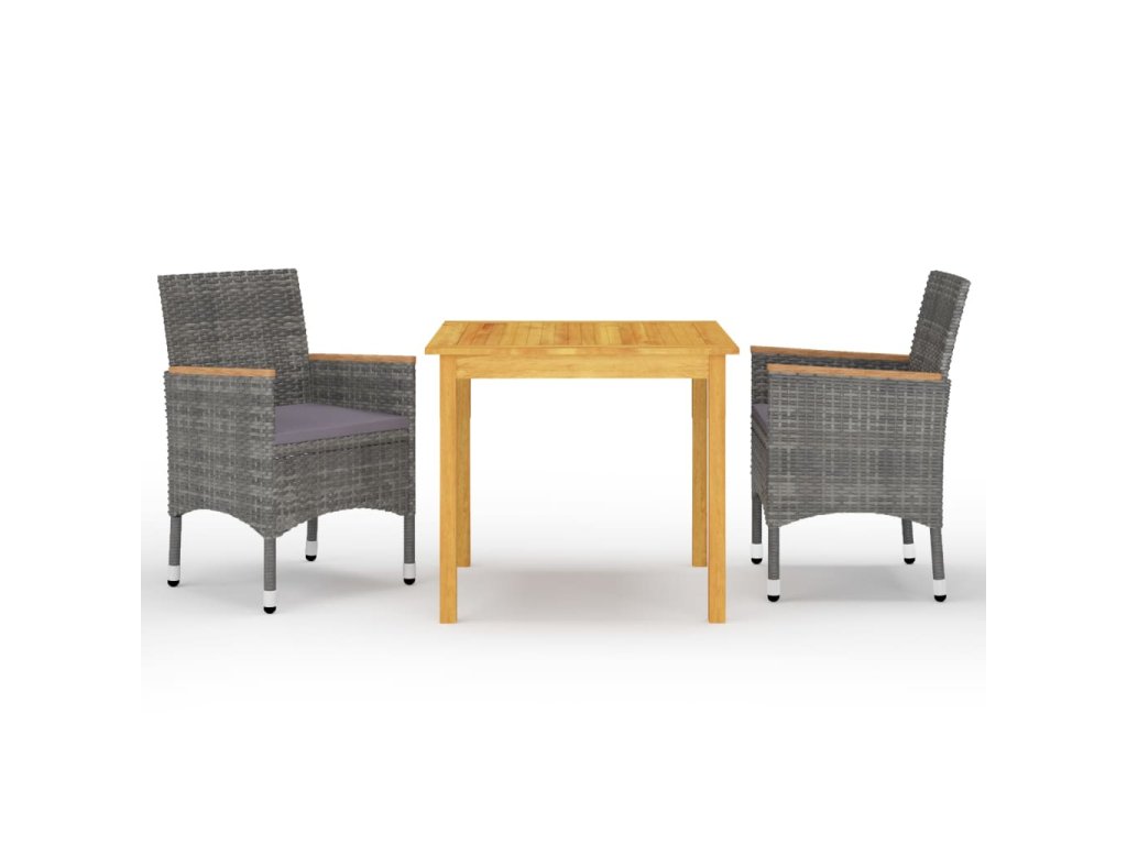 - Materiál: PE (polyetylén) ratan, oceľ s práškovou povrchovou úpravou, akáciový masív s prírodným olejovým náterom