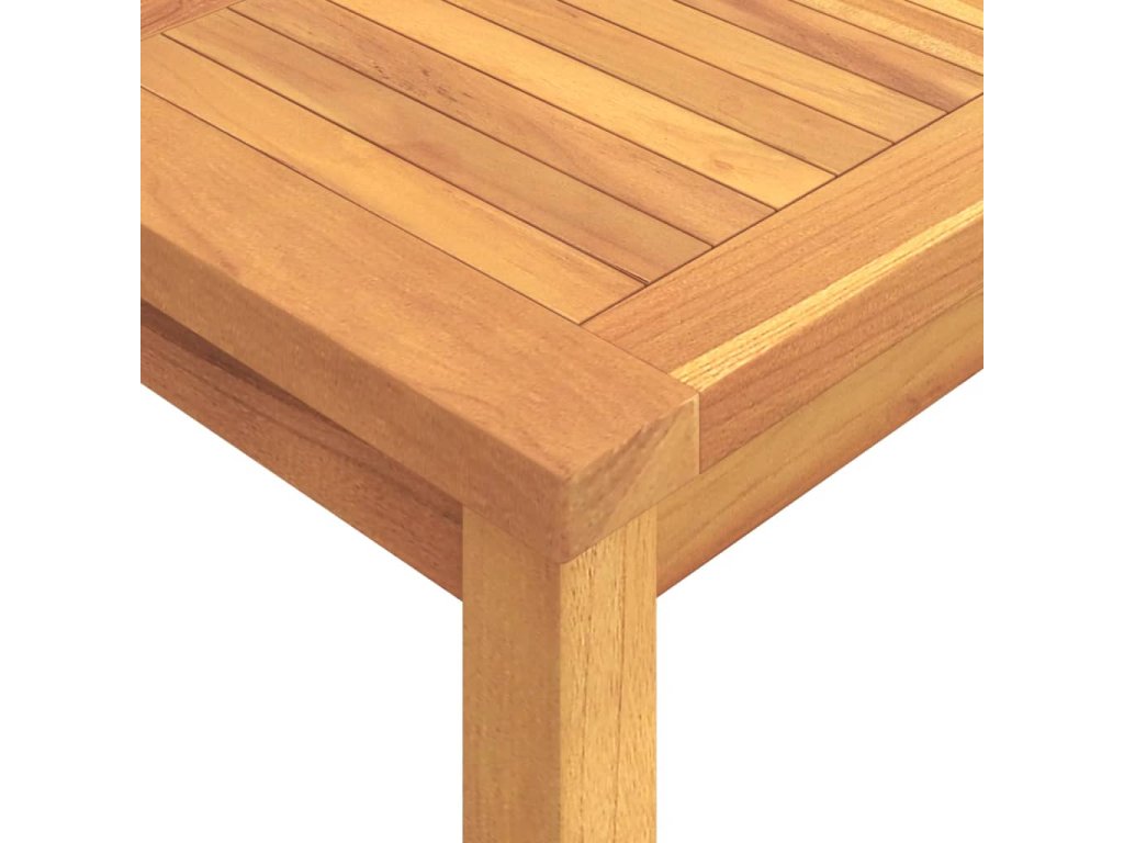 - Masívne tíkové drevo: Masívne tíkové drevo je krásny prírodný materiál. Bolo vyzreté, umelo vysušené a jemne obrúsené, čo mu dalo veľmi hladký vzhľad. Teakové drevo je známe svojou výnimočnou pevnosťou a odolnosťou voči poveternostným vplyvom.