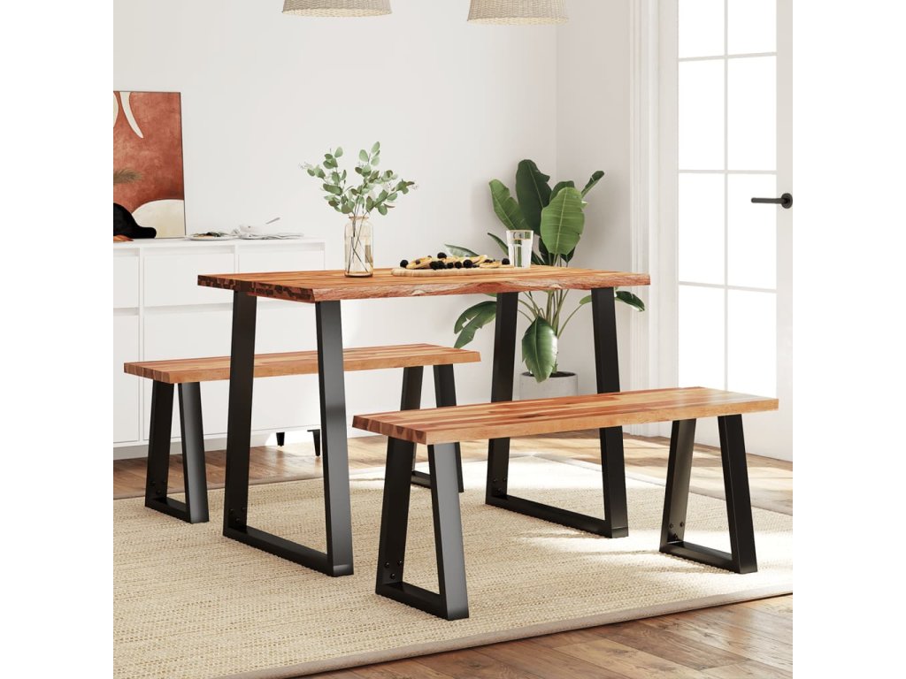 - Masívne akáciové drevo: Lavička a jedálenský stôl sú vyrobené z masívneho akáciového dreva. Masívne akáciové drevo je krásny prírodný materiál. Akáciové drevo je drevo tropického listnatého stromu, ktoré je husté, pevné a trvácne.