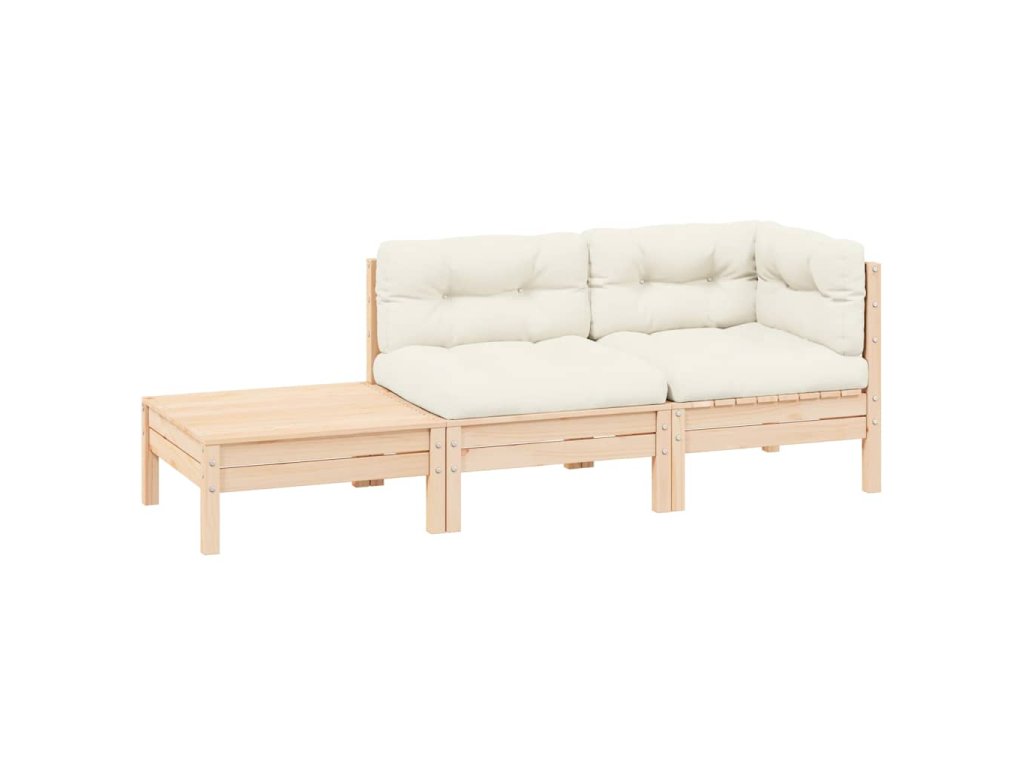 Terasová sedacia súprava je vyrobená z masívneho borovicového dreva, vďaka čomu je robustná a stabilná. Vankúše jej dodávajú dodatočné pohodlie. Môžete ju skombinovať s inými modulárnymi segmentmi a vytvoriť si tak svoje vlastné konfigurácie záhradného posedenia!