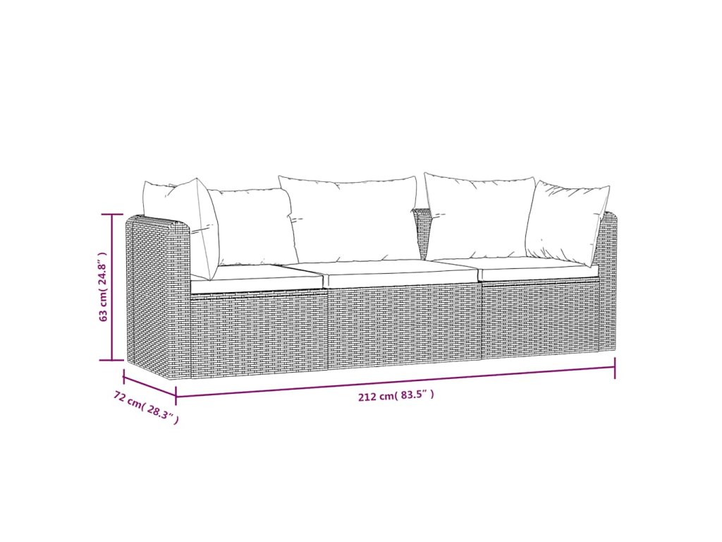 Balenie obsahuje 2 rohové pohovky, 1 stredovú pohovku, 3 podsedáky a 3 vankúše za chrbát. Poznámka: V prípade dažďa, snehu a mrazov odporúčame súpravu zakrývať.