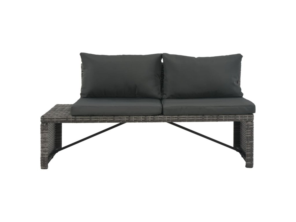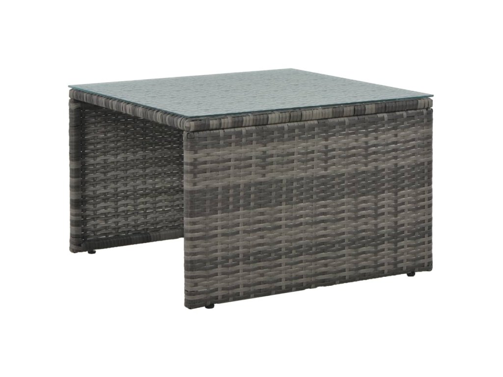Táto polyratanová sedacia súprava pozostáva z 1 konferenčného stolíka, 1 rohového stolíka, 2 pohoviek, 4 vankúšov a 4 podložiek na sedadlo. Poskytne vám štýlové posedenie do záhrady či na terasu.