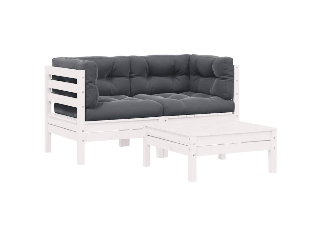 Terasová sedacia súprava je vyrobená z masívneho borovicového dreva, vďaka čomu je robustná a stabilná. Vankúše jej dodávajú dodatočné pohodlie. Môžete ju skombinovať s inými modulárnymi segmentmi a vytvoriť si tak svoje vlastné konfigurácie záhradného posedenia!