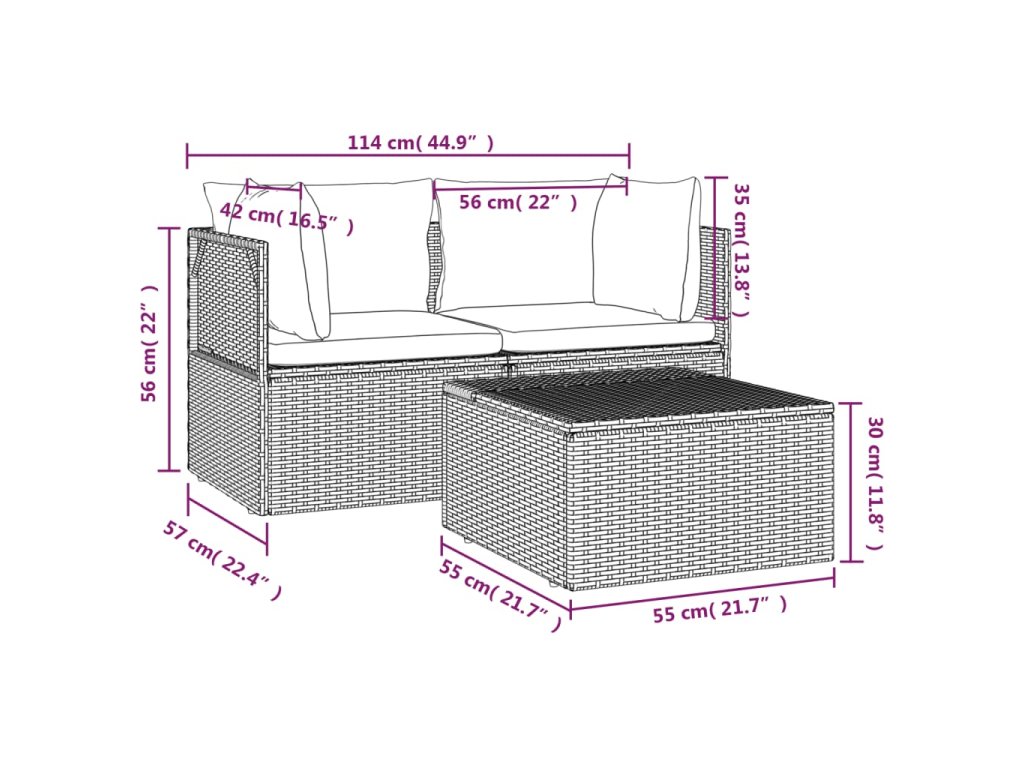 - Materiál: PE ratan, oceľ s práškovým nástrekom, polyester, PVC (polyvinylchlorid)