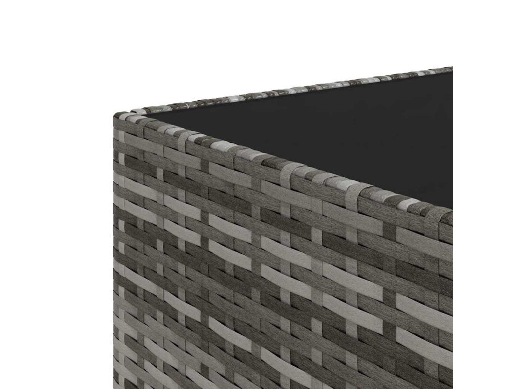 - Materiál: PE ratan, oceľ s práškovým nástrekom, látka (100% polyester), tvrdené sklo