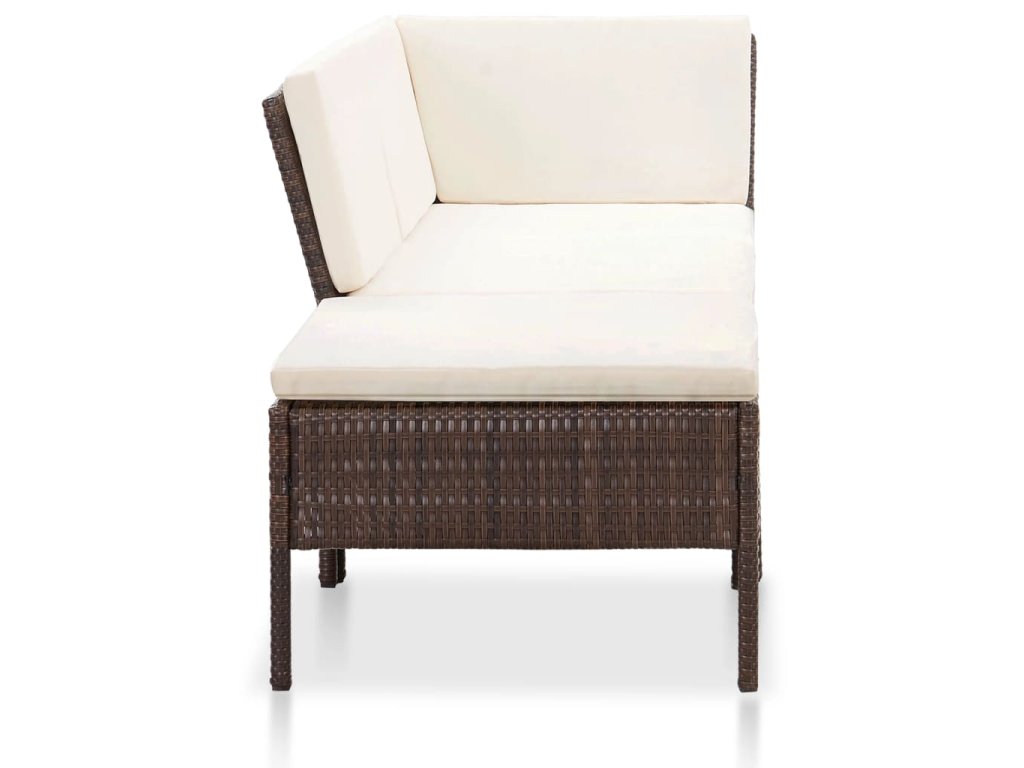 Táto súprava vyrobená z odolného PE ratanu na oceľovom ráme s práškovým nástrekom je silná, pevná a odolná voči poveternostným vplyvom. Vďaka PE ratanu, ktorý odoláva každému počasiu, sa sedacia súprava ľahko čistí, je odolná a vhodná na každodenné použitie. Vďaka hrubo čalúneným vankúšom a mimoriadne hlbokým moderným sedadlám sa na ňu budete vracať kvôli skvelému odpočinku. Vďaka jej ľahkej a modulárnej konštrukcii môžete túto súpravu ľahko premiestňovať po celom dome.