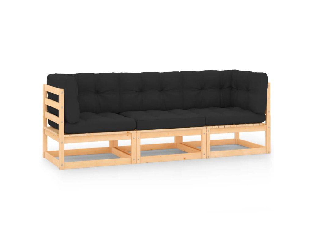 Sedacia súprava je vyrobená z masívneho borovicového dreva, vďaka čomu je odolná a stabilná. Táto sada má pevnú konštrukciu a nevyžaduje si náročnú údržbu. Vankúše dodajú extra pohodlie počas sedenia. Táto súprava dodá vášmu obytnému priestoru nádych rustikálneho šarmu.