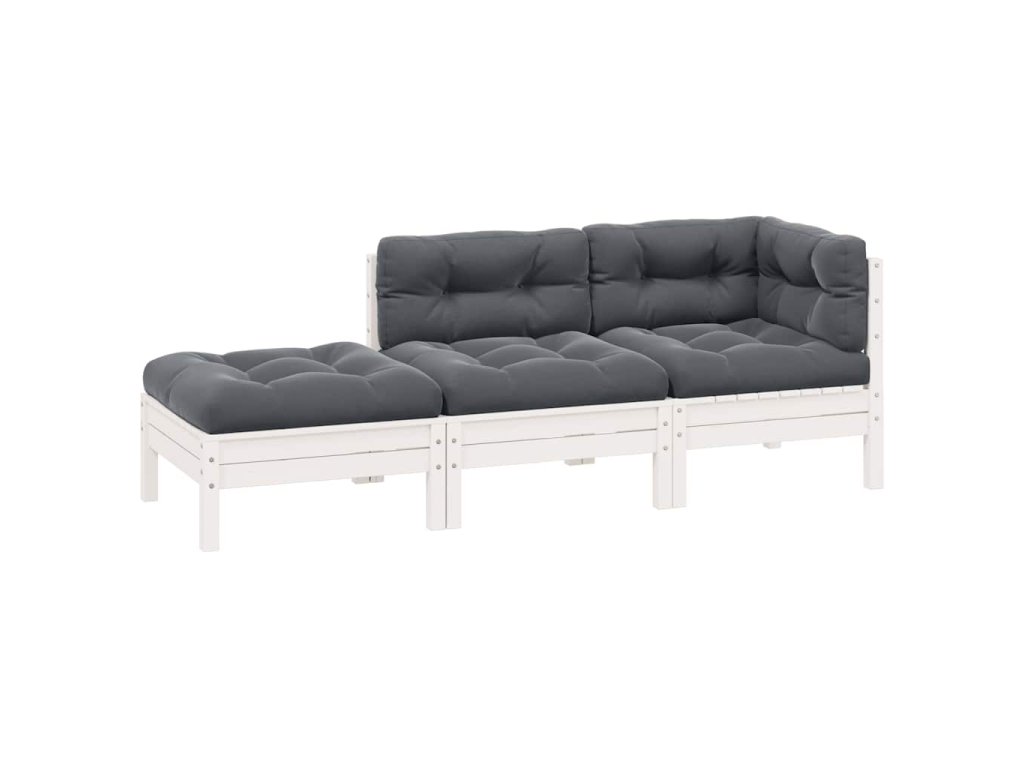 Terasová sedacia súprava je vyrobená z masívneho borovicového dreva, vďaka čomu je robustná a stabilná. Vankúše jej dodávajú dodatočné pohodlie. Môžete ju skombinovať s inými modulárnymi segmentmi a vytvoriť si tak svoje vlastné konfigurácie záhradného posedenia!