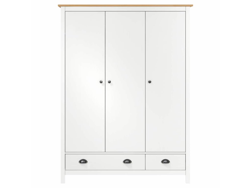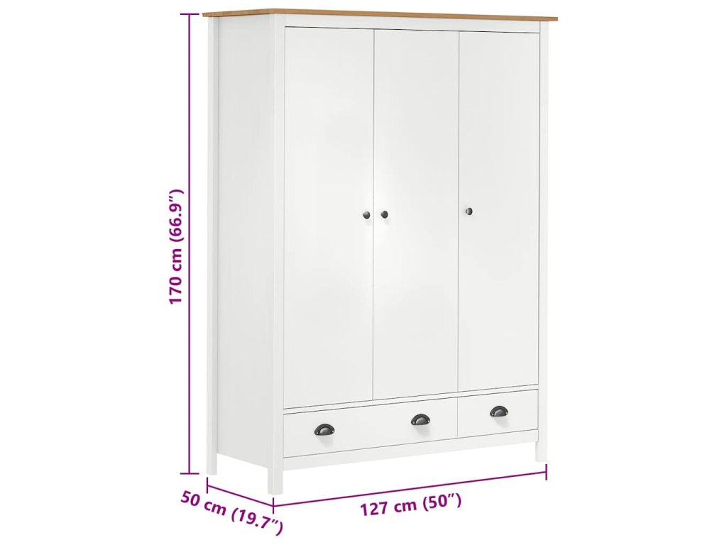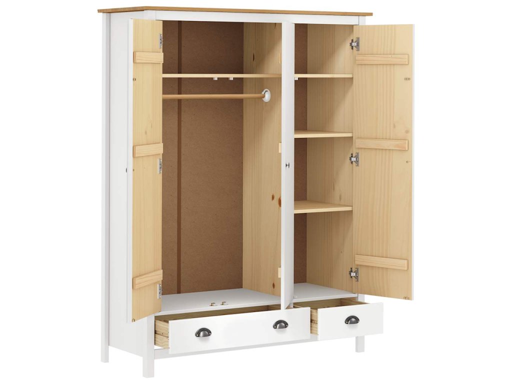 Šatník, vyrobený z borovicového masívu, je veľmi odolný. Skrinka na šaty má 2 zásuvky a 5 poličiek, čo poskytuje dostatočný priestor na uloženie menších predmetov na dosah. Má veľkú priehradku vybavenú závesnou tyčou, pomocou ktorej môžete zavesiť kabáty, šaty atď. Montáž skrinky je jednoduchá.
