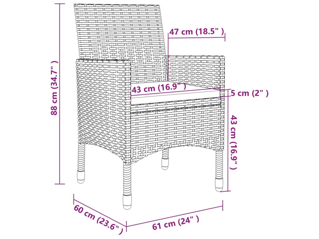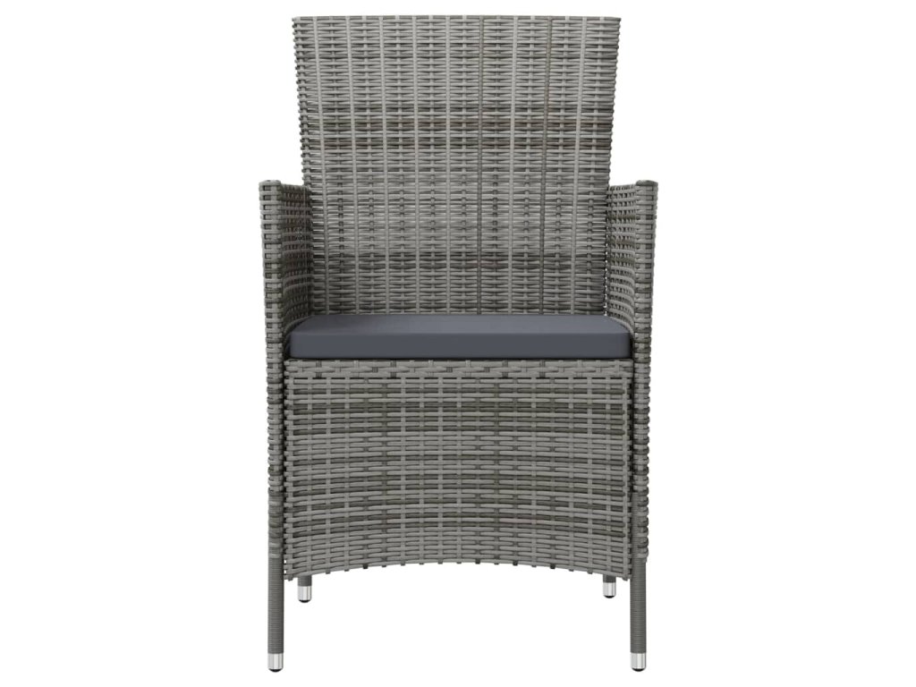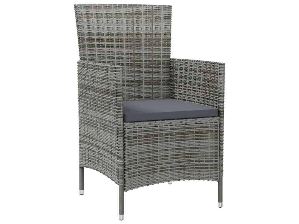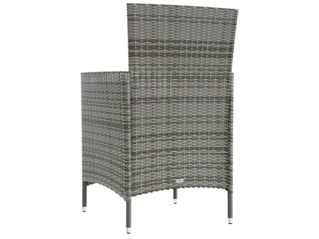 Táto záhradná jedálenská súprava má oceľový rám s práškovým nástrekom, vďaka čomu je stôl so stoličkami stabilný a odolný. Vďaka PE ratanu odolnému voči poveternostným vplyvom sa sada vonkajšieho nábytku ľahko čistí. Vankúše sú odnímateľné, takže sa ľahko čistia. Hrubé vankúše navyše zvyšujú pohodlie počas sedenia.